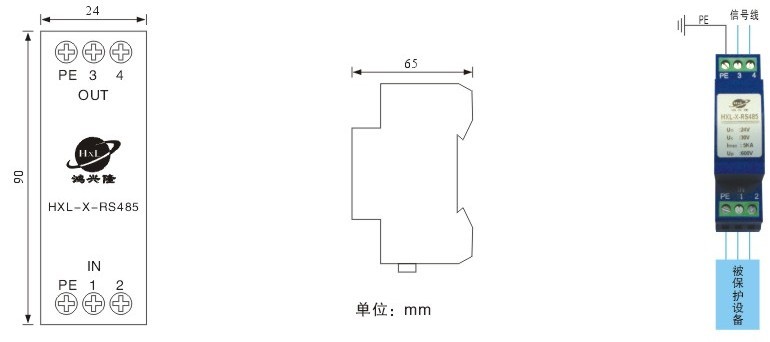 1:本產(chǎn)品安裝于信號(hào)通道和被保護(hù)設(shè)備之間,輸出端與被保護(hù)設(shè)備相連。